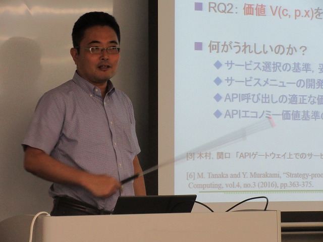 サービスコンピューティング研究会(SC)で発表しました†報告:中村 2017-09-01 2017年8月25日(金)に法政大学・新一口坂校舎で行われた,電子情報通信学会・サービスコンピューティング研究会(SC)に参加し,研究発表をしてきました. 今回の研究会はインタプライズ・モデリング研究会(SWIM)との共催で,「ソサエティ5.0に向けたサービスコンピューティングとインタプライズモデル化技術」というテーマで開催されました. SCとSWIMは研究のスコープが重なっている部分もあり,特にソサイエティ5.0は共通の関心事であるため,活発な議論が交わされました. 中村の発表は,「APIエコノミーにおける開発者視点からのAPI価値に関する一考察」という発表で,ソサイエティ5.0で展開されるAPIエコノミーにおいて,開発者がAPIの何に価値を見出すのかを説明するためのモデルを提案しました. 久しぶりに単著で書いた論文で,いろいろと新しいことも勉強できてよかったです. 特に,新しいソフトウェア品質モデルSQuaRE (ISO25000シリーズ)を詳しく勉強 できたことは収穫でした. 何歳になっても自分で論文を書くということは重要だと思いました(^^) 当日の資料は,SWIM研究会のページから見ることができます. 中村の発表. 富士通・西川様の発表.ヒューマンセントリック・イノベーションについて. 三菱電機・小倉様の発表,超スマート社会実現に向けたビジネスモデルに関する一考察. 参加者は30-40名程度だったでしょうか. 懇親会の様子.SC研究会とSWIM研究会の今後の連携について議論できました. |