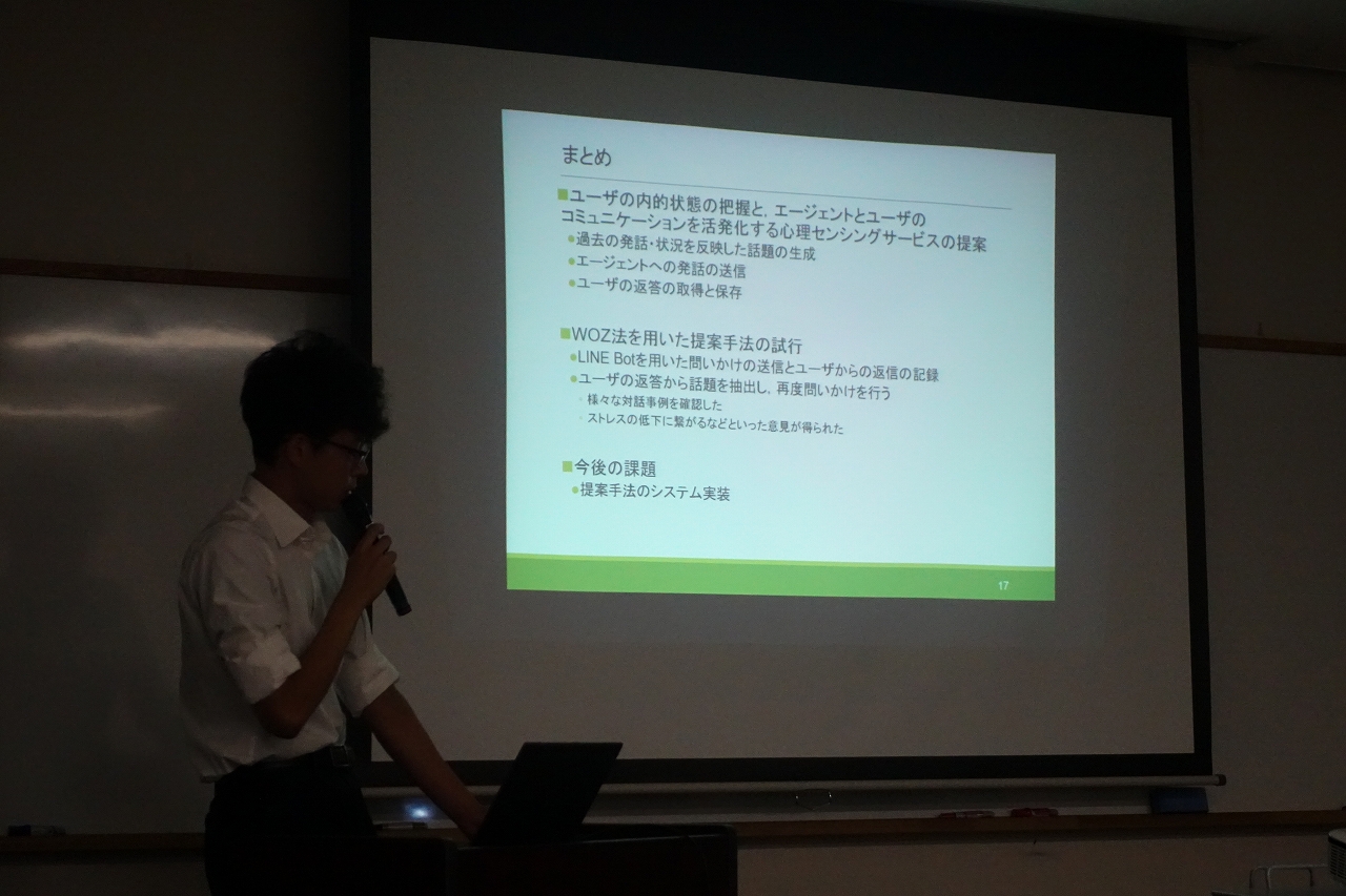 前田は「個人適応ケアのための対話エージェントを用いた心理センシングサービスの検討」