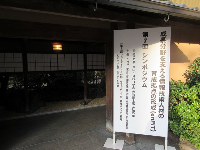 enPiTシンポジウムに参加しました(中村,佐伯)†2019-03-04 中村 こちらも報告が遅れました.2019年1月24日,愛媛・道後温泉・大和屋本店で行われた,enPiT第7回シンポジウム に,中村と佐伯が参加しました. enPiTは全国の大学連携して,実践的なIT人材の育成拠点を形成するという文部科学省のプロジェクトです.神戸大学は,ビッグデータ・AI分野の連携校として参画しており,中村研究室が主担当として取り組んでいます. 今回のシンポジウムは,全国から取り組み大学の代表が一堂に集まり,2018年度の取り組みの報告や,来年度以降の方向性について,議論を行いました. 会場は,道後温泉の一流旅館,大和屋で行われました.道後温泉のすぐそばで,ものすごく立派な会場でした. 基調講演は,理研の中川先生.AIに関する倫理と法制度に関する講演でした. AiBiC関西の紹介ポスター. 社会人向けに始まったenPiT-Proの発表もありました. 大和屋の豪華な昼食! 懇親会の様子 関西のお偉い先生方とお疲れ様会をしました. |
