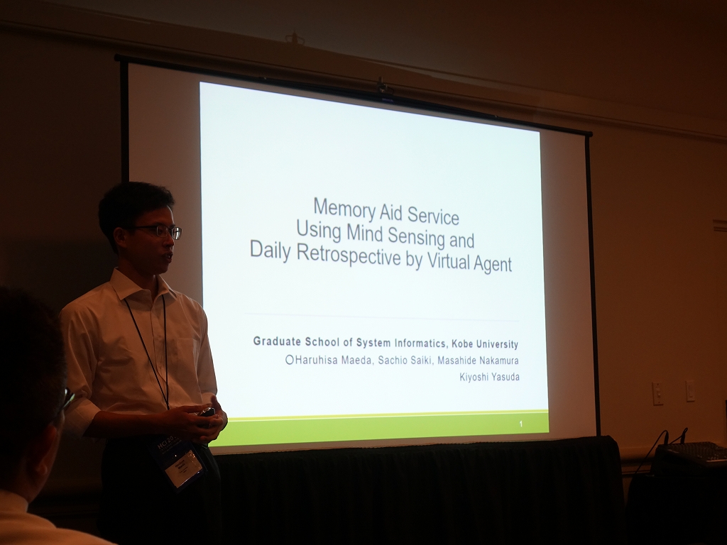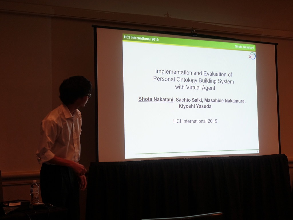 HCII2019に参加しました†報告者:中谷 2019-08-05 2019年7月26-31日に開催されたHCII2019に,中村先生,中谷,前田が参加しました. 中村先生(平山)「Developing Real-time Face Identification Device Composable with Distributed Applications」 中谷「Implementation and Evaluation of Personal Ontology Building System with Virtual Agent」 前田「Memory Aid Service Using Mind Sensing and Daily Retrospective by Virtual Agent」 というタイトルで発表を行いました.