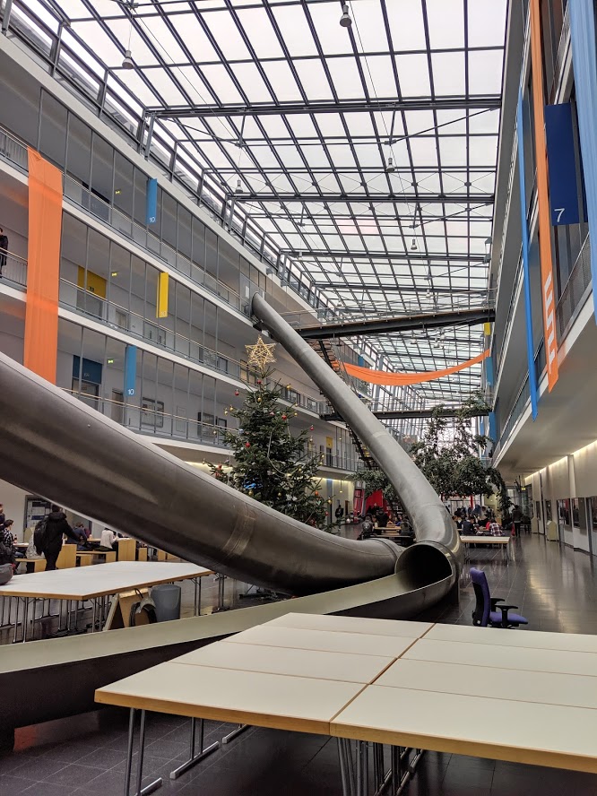 情報学棟はショッピングモールのような内装で,理由は分からないですが大きな滑り台もありました.