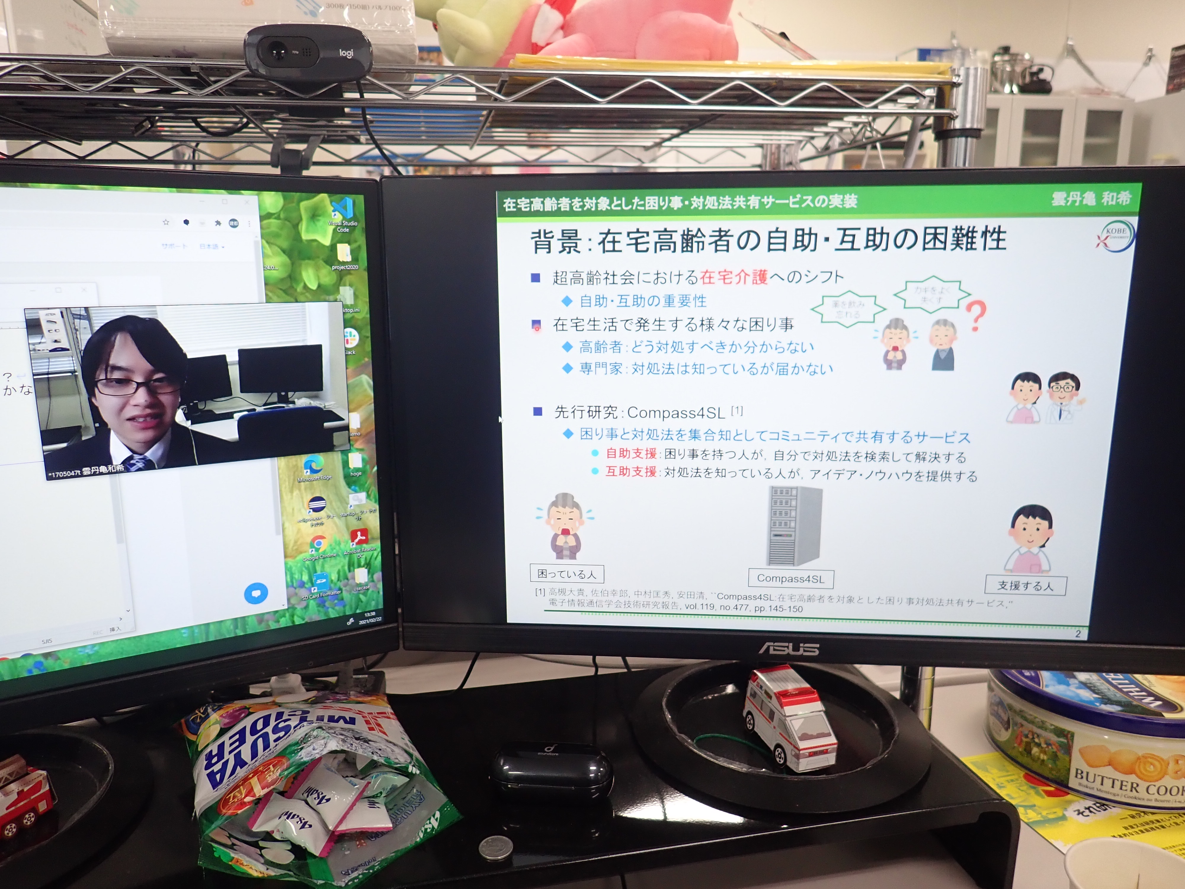 雲丹亀は自宅からの参加となりました。 3人とも初めての学会発表ということで非常に緊張していましたが、無事に発表を終えることができました。 昨今のご時世から、まだ3人とも現地での発表の経験がありません。 |