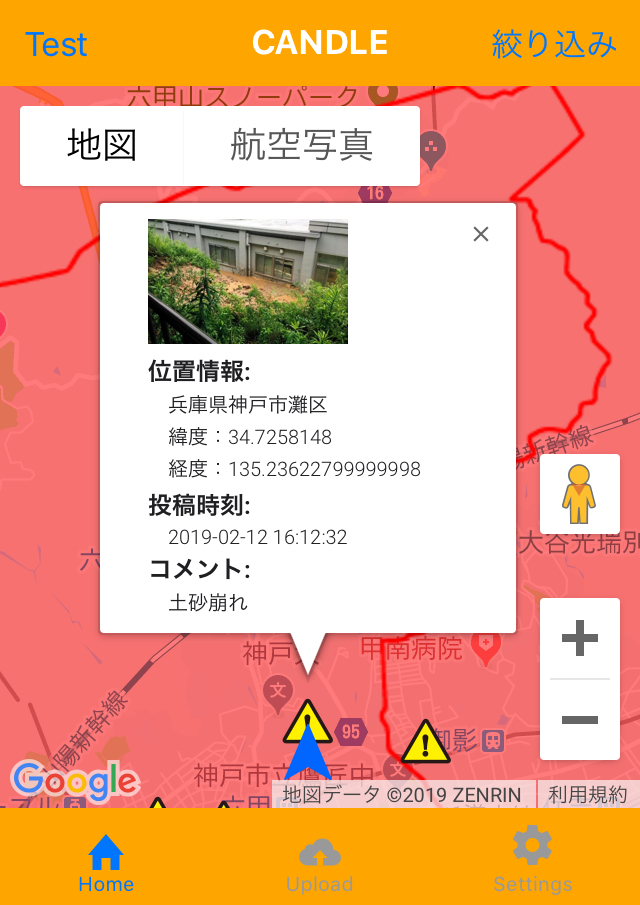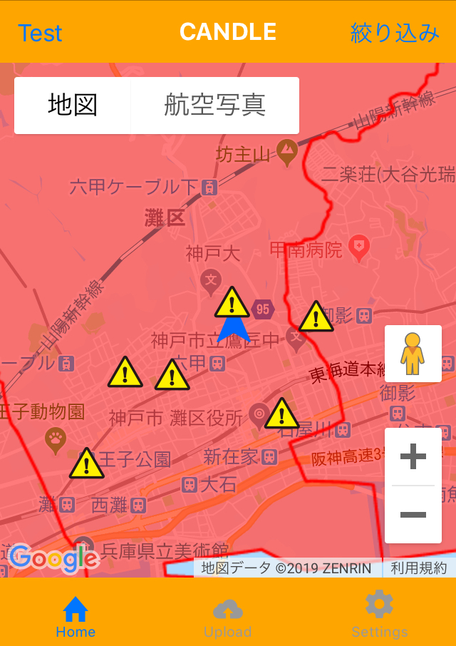 CANDLEによって災害時におけるユーザ個人に応じた周辺状況が理解しやすくなり,災害の危険性を把握できます.