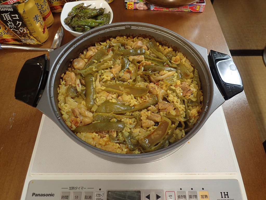 中村先生の指揮のもとスペイン料理をテーマに、ピミエントス・デ・パドロン(しし唐の素揚げ)、パエリア、アヒージョなどを準備しました。 パエリアが若干水分が多くて雑炊的な感じでしたが、おいしかったので問題ないです。