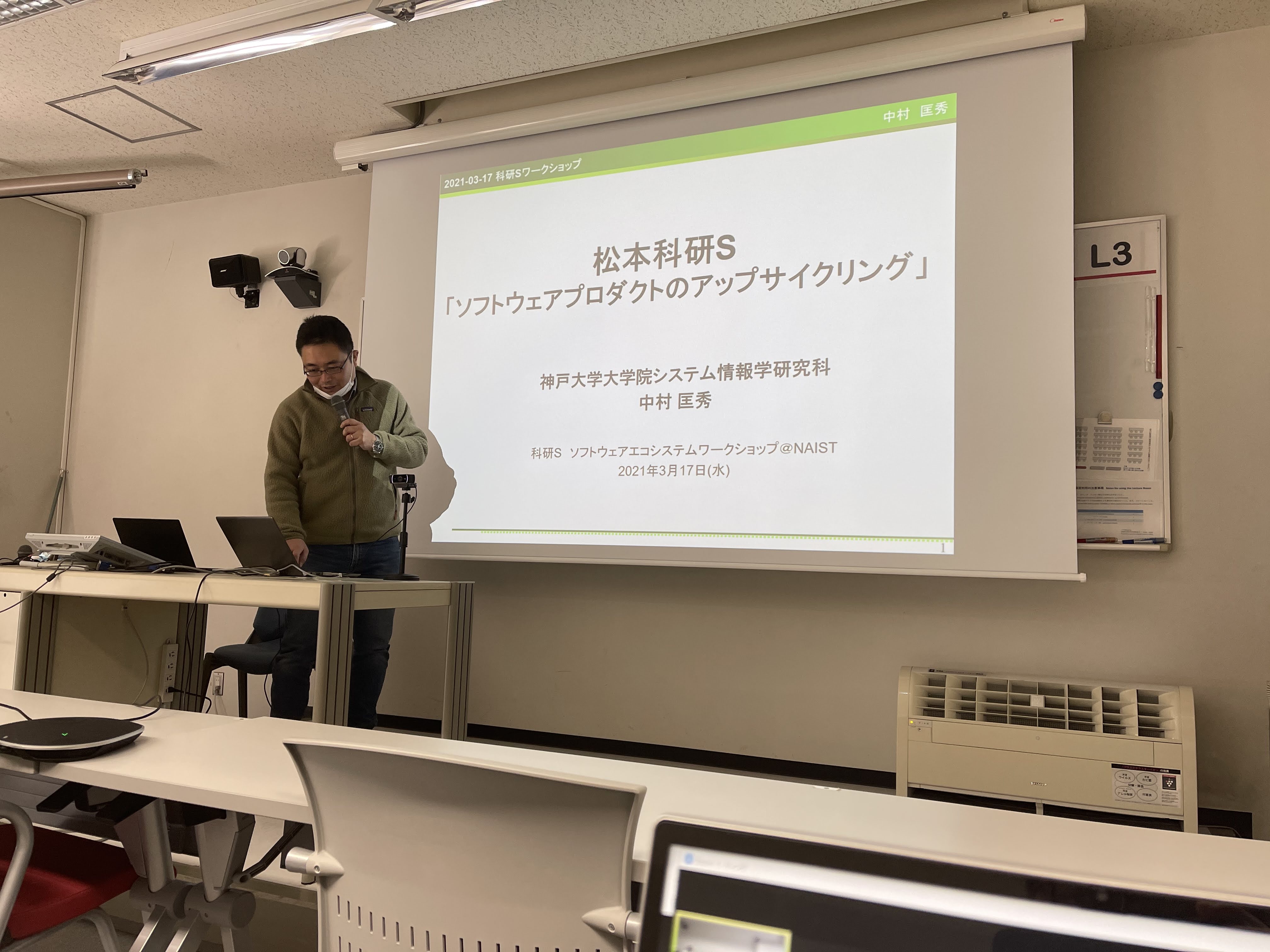 報告者:明石拓弥 2021-04-02 2021年3月17日(水)に奈良先端科学技術大学院大学(NAIST)で科研Sのワークショップが開催されました.現地に集まってと,Zoomでの遠隔参加と両方可能なハイブリッドでの開催になりました.