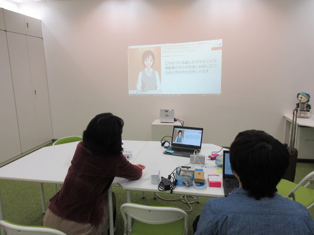 センサボックスとメイちゃんによる個人適応カウンセリングのデモをやっていただきました.