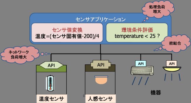 そのため,センサが増加するとアプリケーションの複雑さが増大し,センサの追加・変更時のアプリケーションの改修コストが大きくなってしまいます.