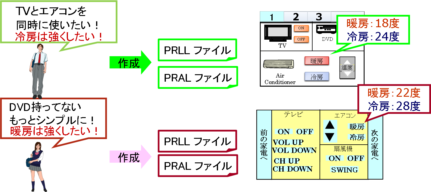 これにより,ユーザはPRLLを記述するだけで,レイアウトとボタン押下時の家電操作を設定できるようになります.