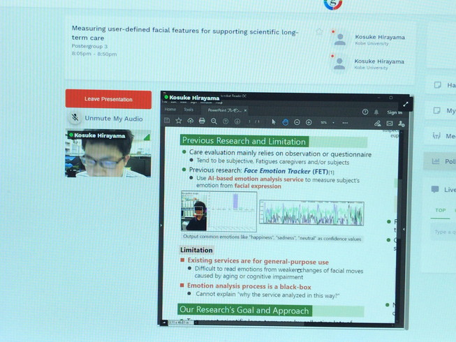 中村先生が発表をされているところです.オンラインのポスターセッションということで,手元の画面を参加者に映しながら話す,というスタイルになっています.
