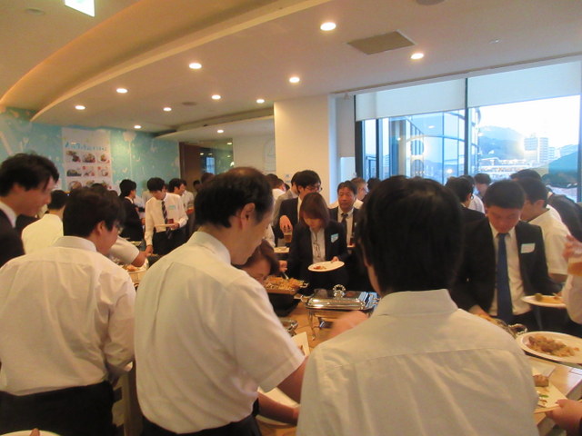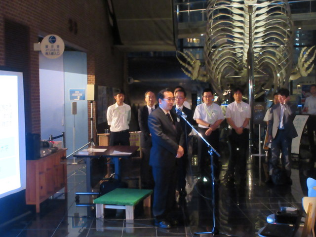 バンケットの様子.下関・海響館という水族館を貸し切って行われました.下関市長のご厚意で,フグ刺しやフグ鍋も振る舞われました!!