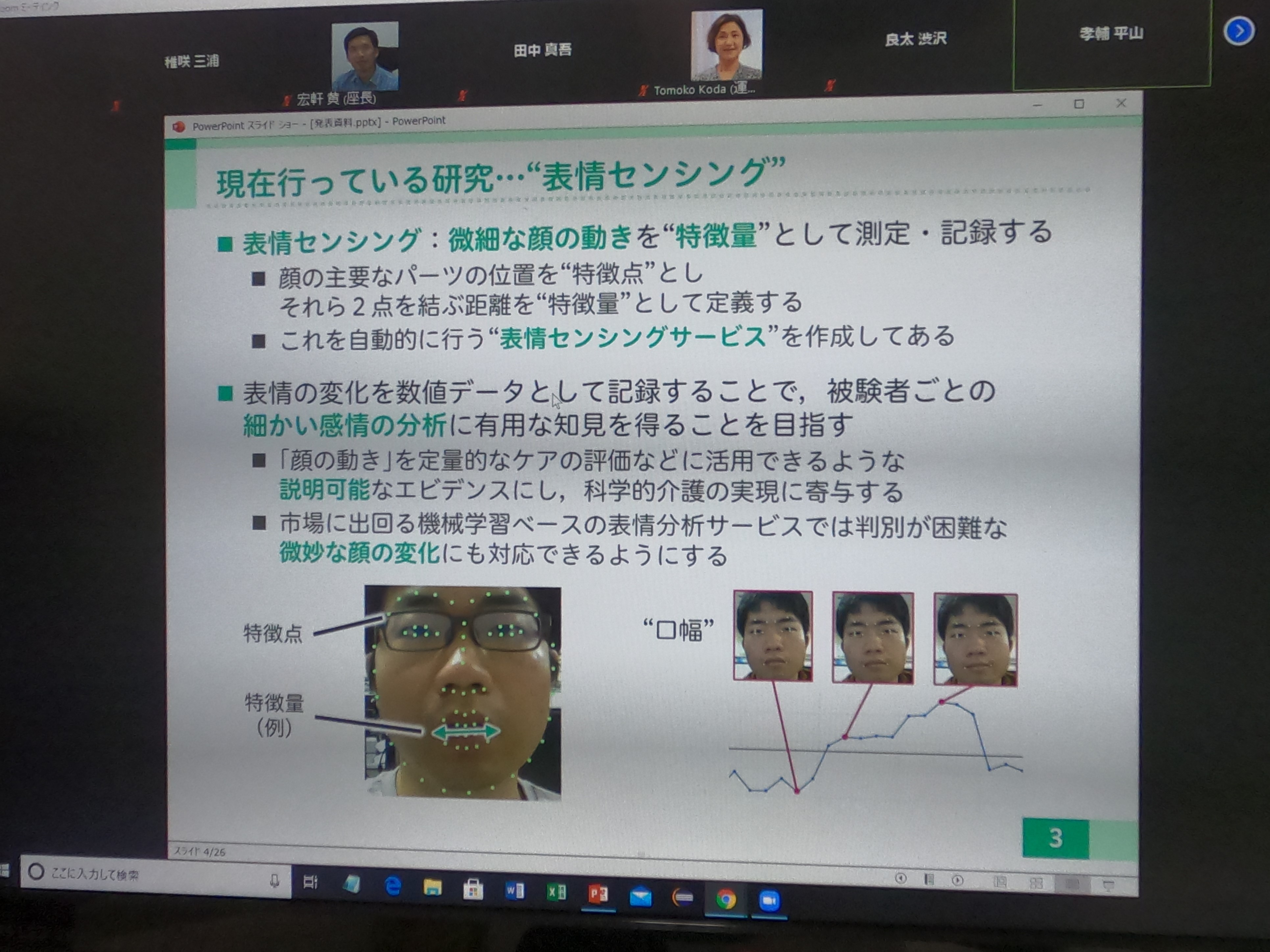 平山君,三浦は「高齢者支援」の研究を行っていますが,人と寄り添うコミュニケーションというテーマにマッチするのではないかと考えたこと,