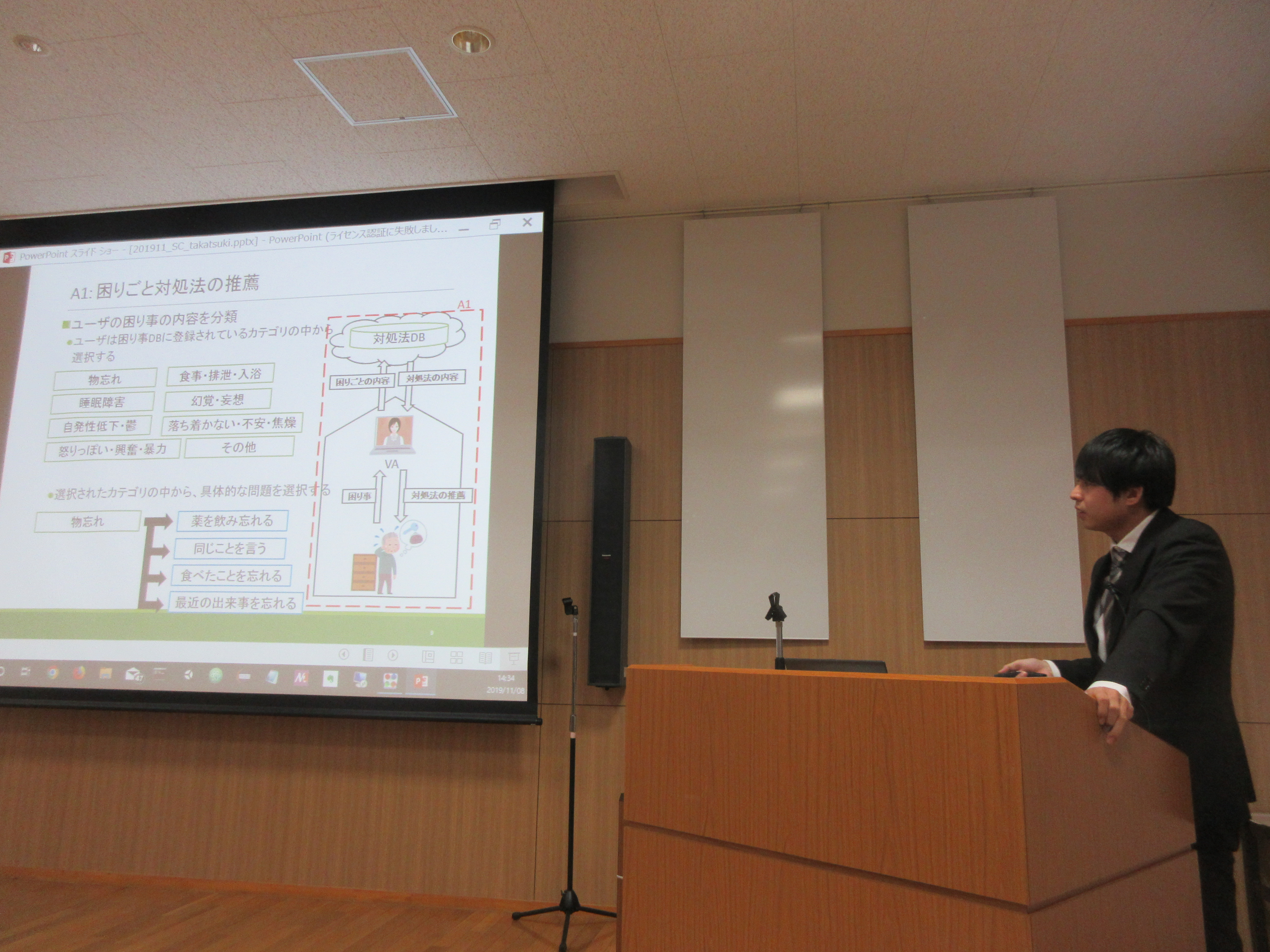 私は「在宅高齢者を対象とした困りごと対処法推薦・共有サービスの提案」という題目で発表しました。
