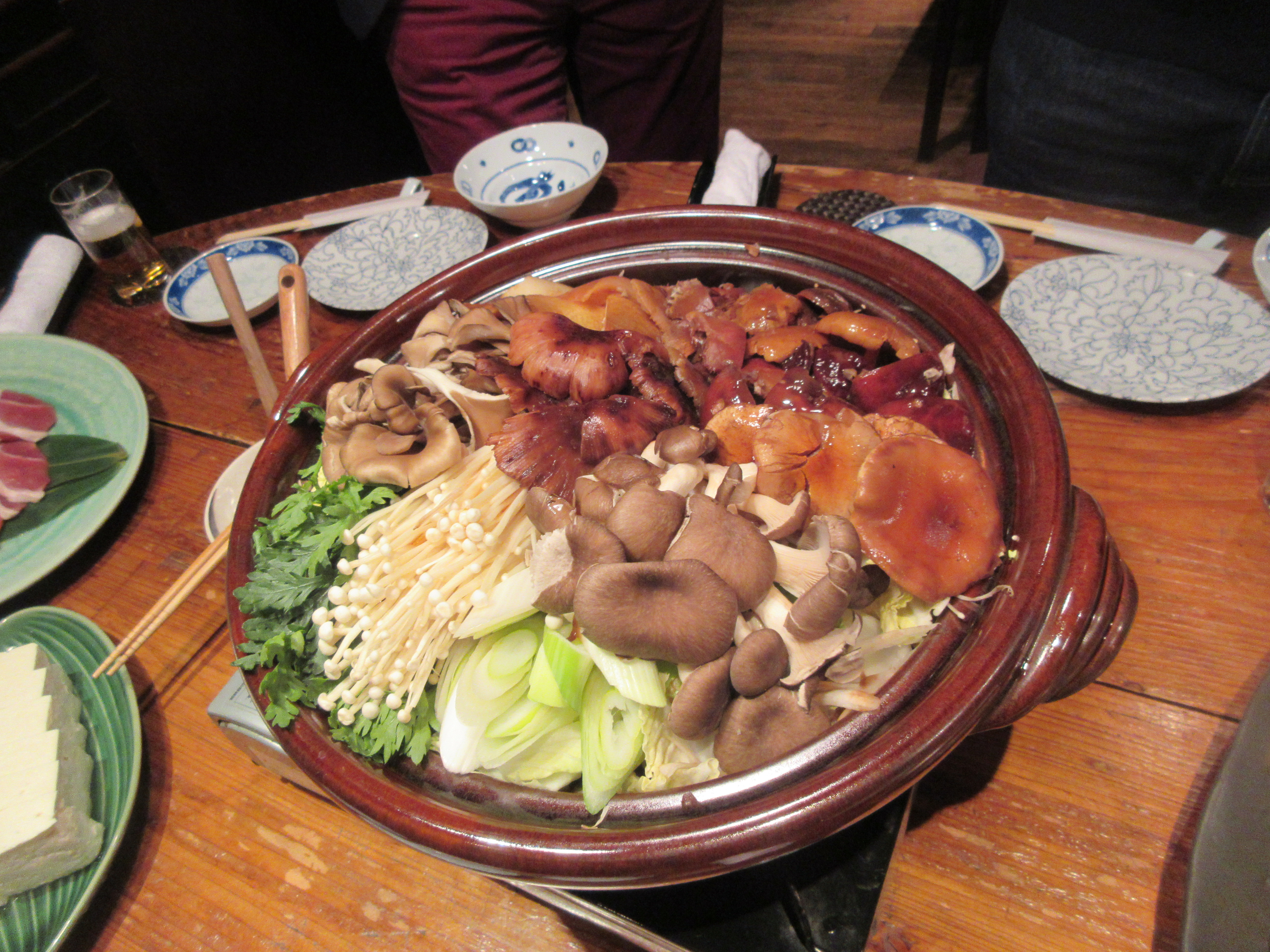 懇親会では店主が実際に採ってきた8種類のきのこが沢山入ったきのこ鍋をたべました。 椎茸は入っていないことに安堵し、とても美味しくいただきました。 個人的にとなりに座っていた立命館の学生に「モルック」という新?スポーツについて教えてもらいました。